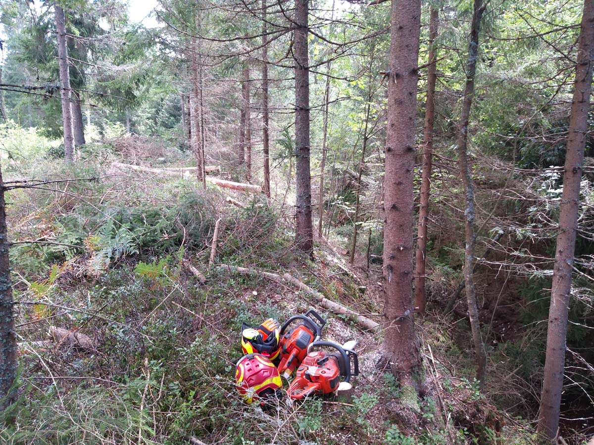 Egal, ob nur ein Baum mit der Motorsäge gefällt werden oder ein ganzes Waldstück abgetragen werden soll, wir sind für jede Herausforderung gerüstet. Im Steilgelände setzen wir Forstschlepper mit Seilwinde und Rückefahrzeuge ein. Bei kleinen Auftragsvolumina arbeiten wir so ressourcenschonend wie möglich.