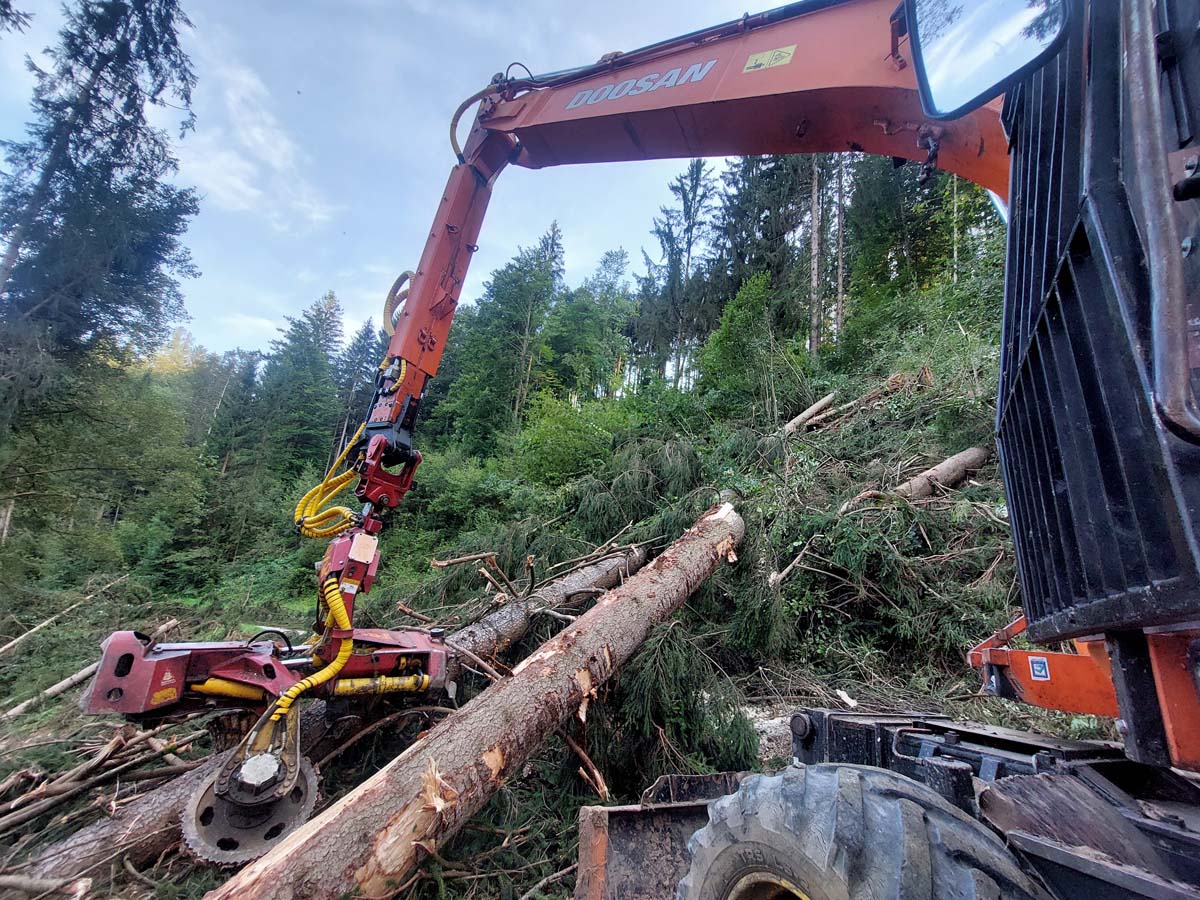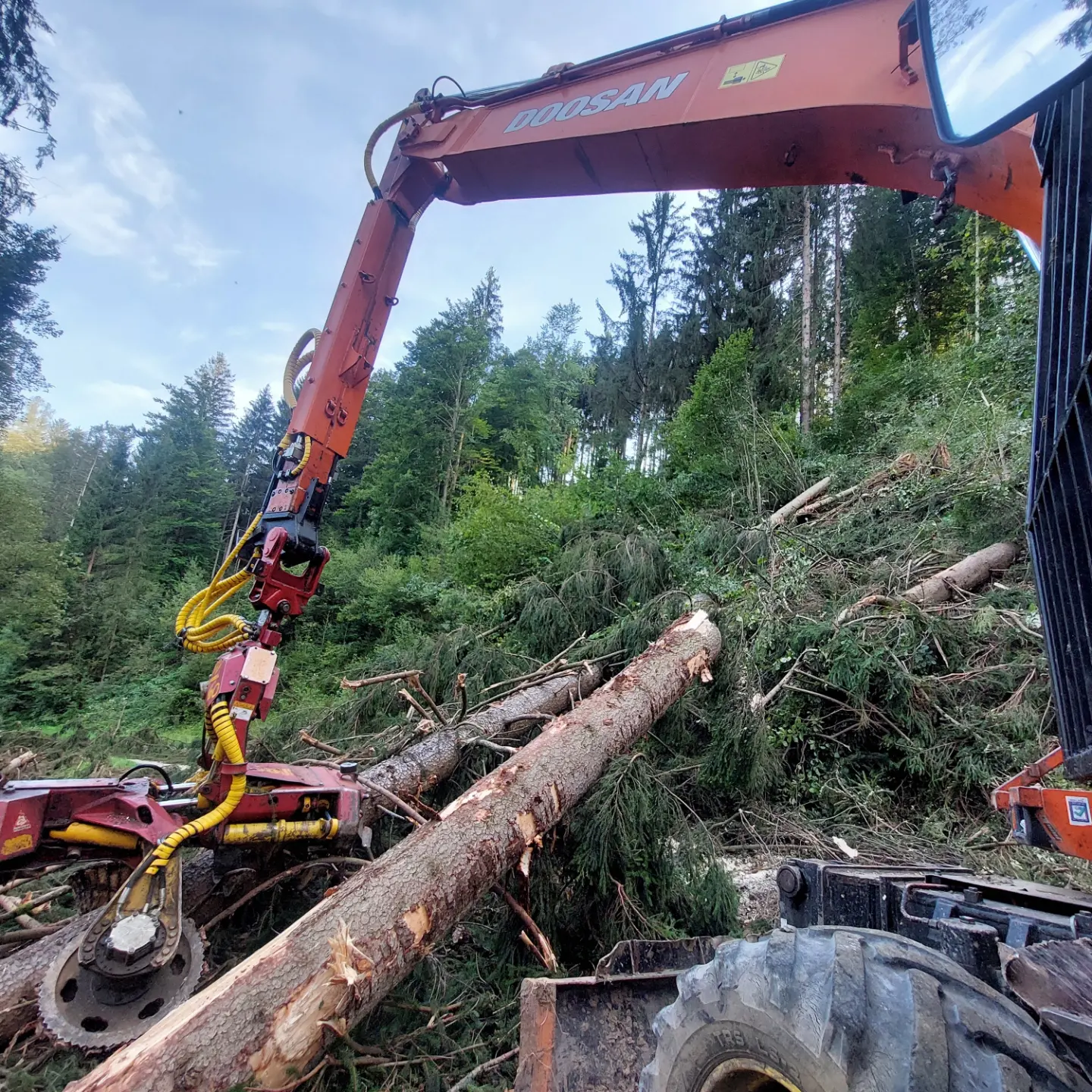 Bei unseren Holzschlägerungsarbeiten legen wir großen Wert auf Wirtschaftlichkeit und Nachhaltigkeit. Unsere Forstarbeiter stehen für eine bodenschonende, effiziente Holzernte nach den Bedürfnissen ihrer Kunden. Dank moderner Geräte können wir selbst große Flächen oder Arbeiten im Steilgelände rasch und sicher erledigen.